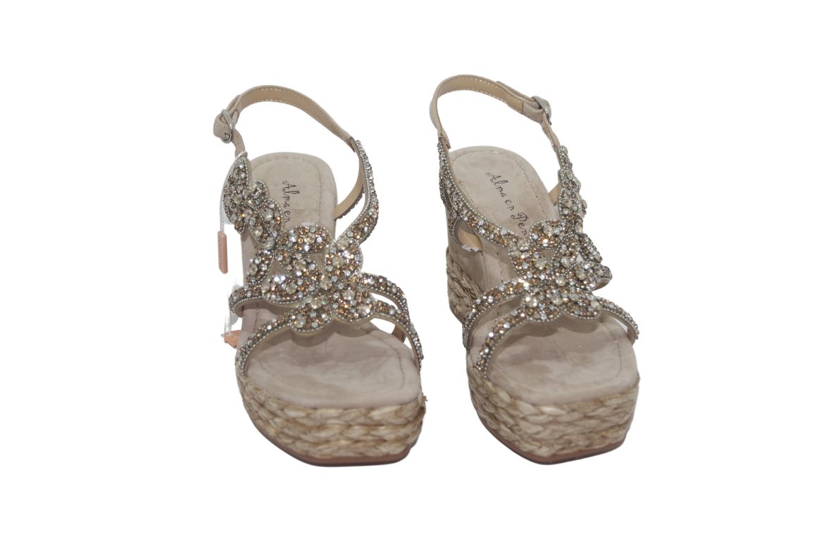 • Zeppa in camoscio e rafia di 10 cm con plateau di 3.