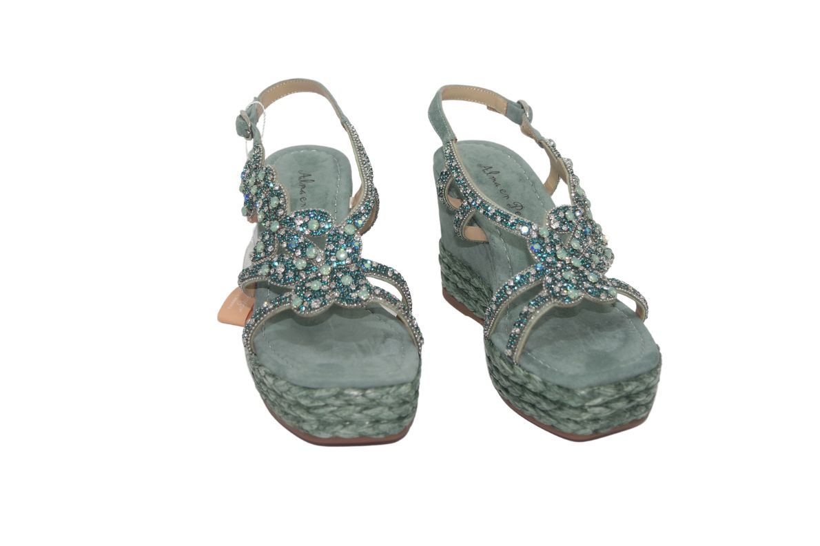 Scarpa in pelle scamosciata disponibile in verde e beige.