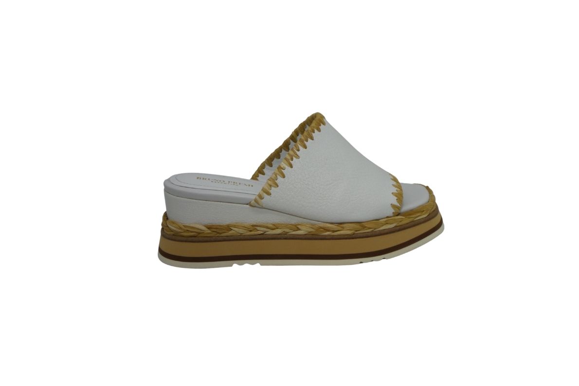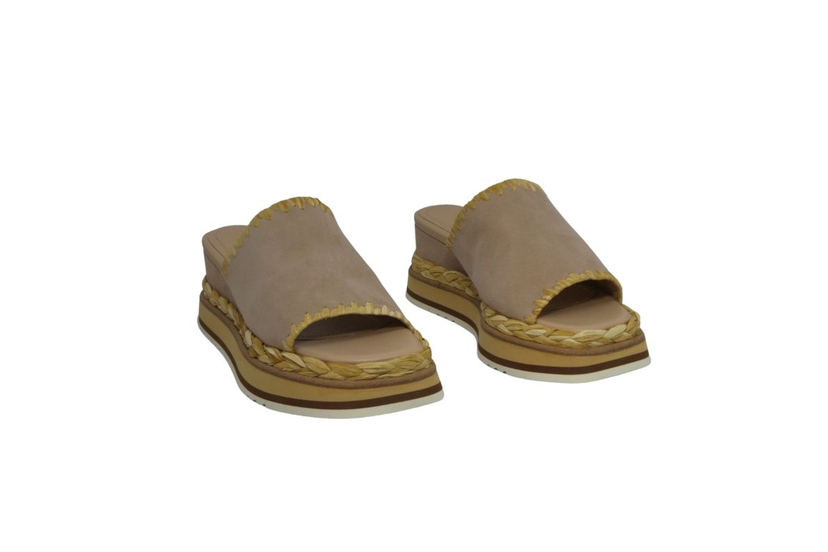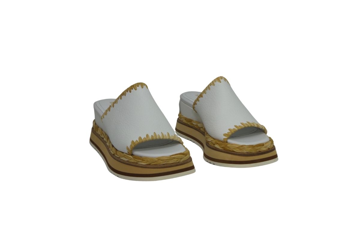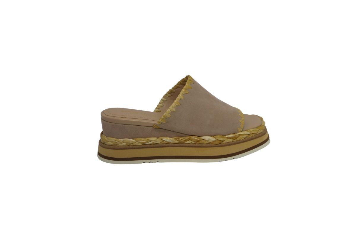 Sandalo zeppa in pelle bianco e scamosciata cipria.
