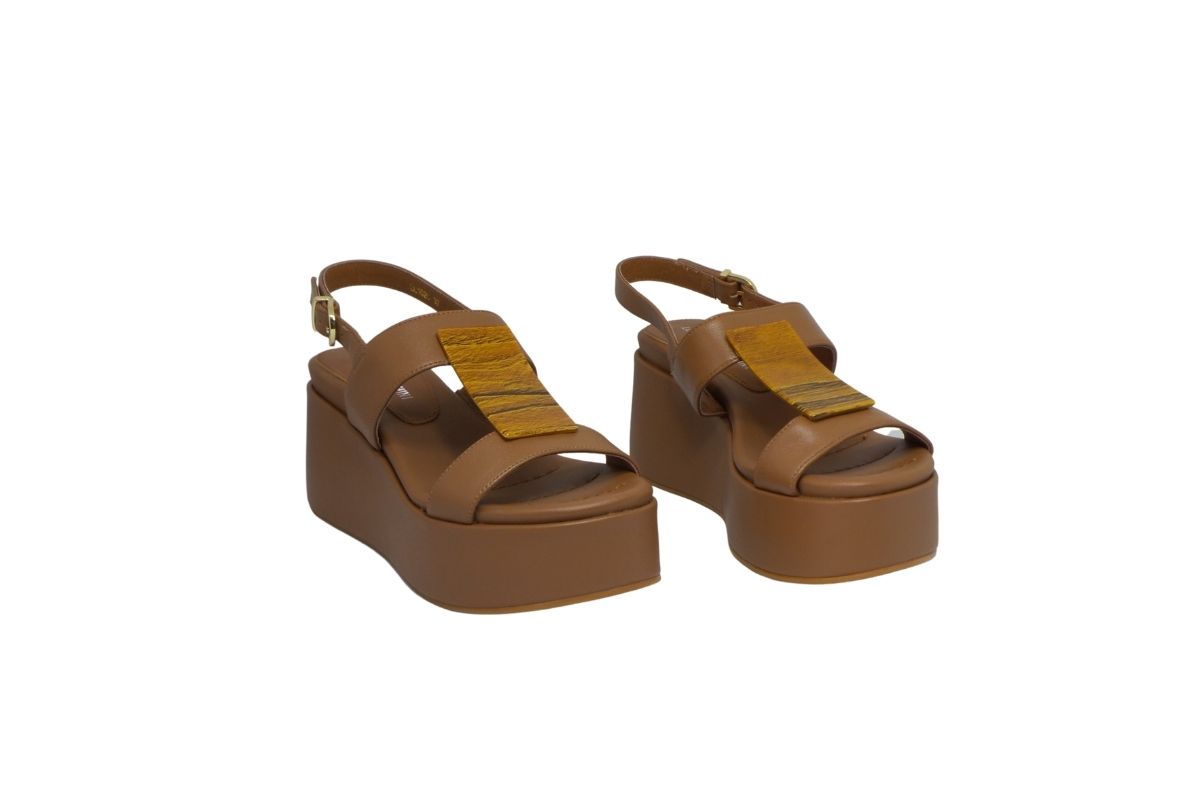 Zeppa in pelle liscia disponibile nel colore cuoio.