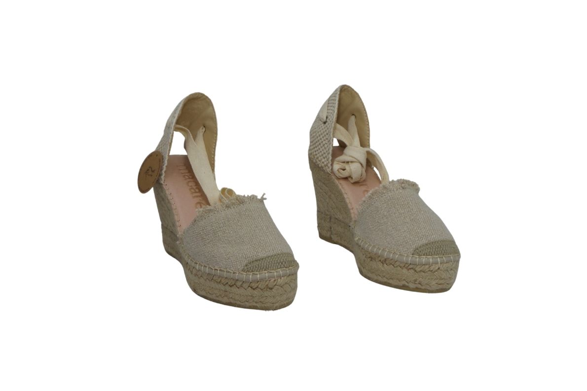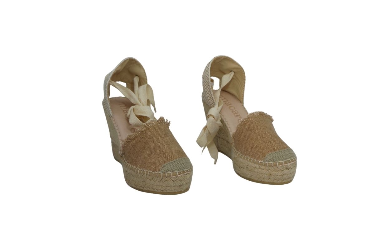 • Tomaia in lino , nastri da allacciare alla caviglia.