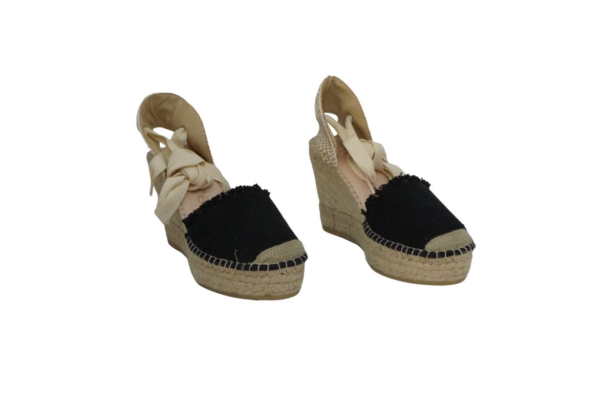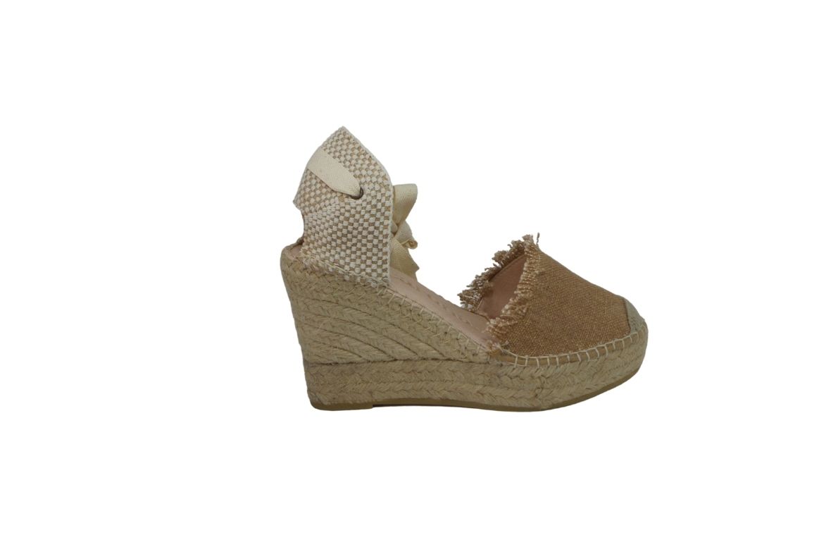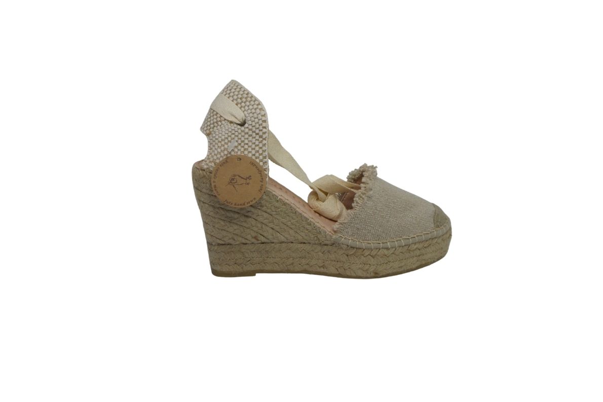 Zeppa in corda disponibile in ecru , nero e cuoio.